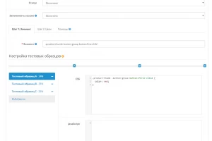 - сначала указывается тестируемый элемент и прописываются стили и скрипты для тестовых образцов в модуле "AB-Test Elements";