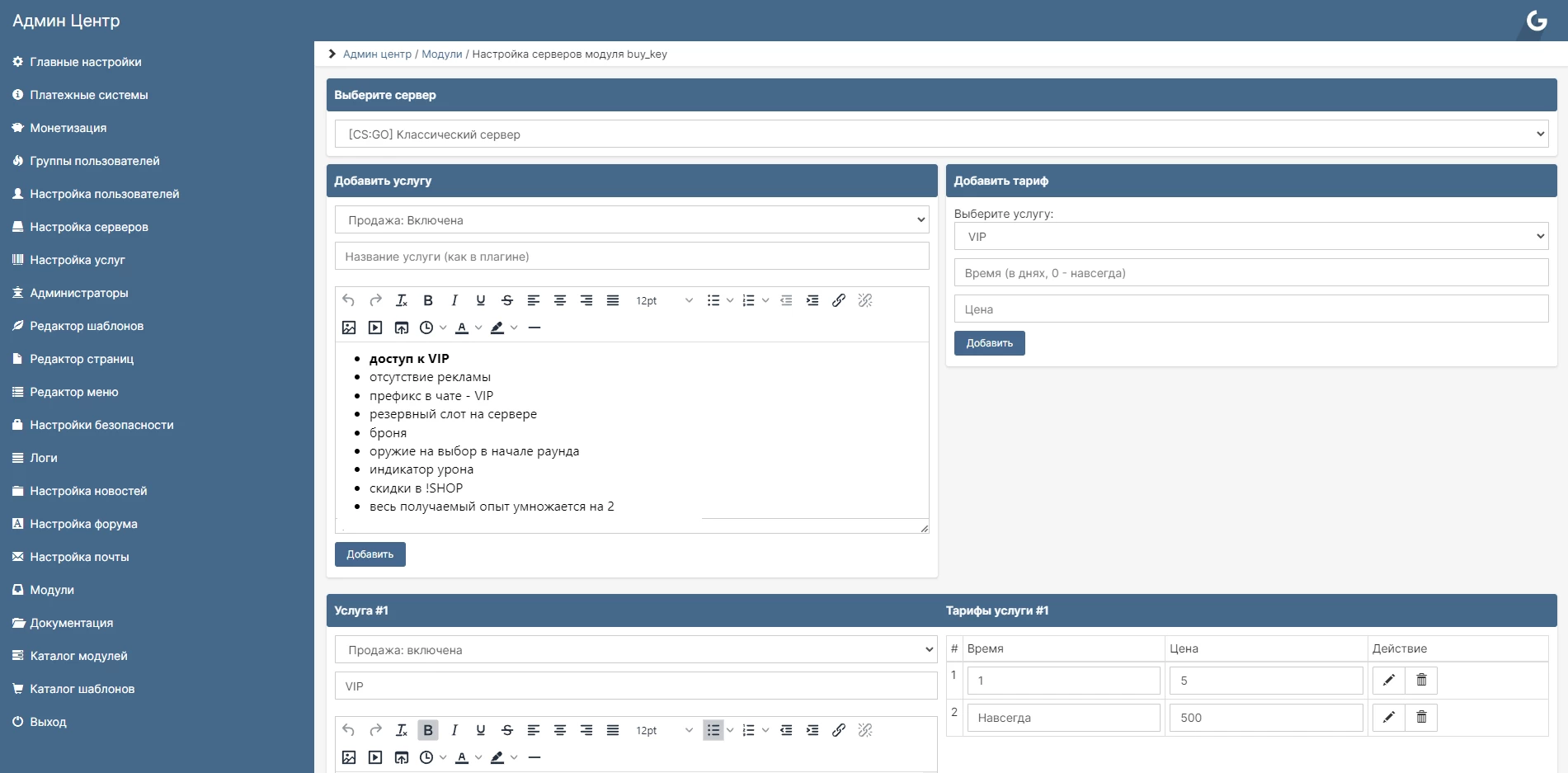 Модуль для Game CMS - «Интеграция VIP от Riko»