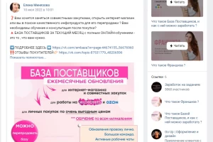 В таких группах продают собственно базы оптовиков, дают ссылки на отдельных продавцов, рекламируют товары и магазины. В некоторых можно напрямую сделать заказ или выбрать в поиске нужный товар или группу товаров.
