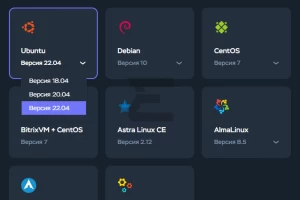 Выбор ОС: Ubuntu, Debian, CentOS, Alma, Rocky, Astra, FreeBSD (Windows Server, Windows - не по минимального тарифу)