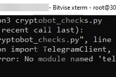pip install telethon После чего так же запускайте файл до тех пор пока он корректно не запустится, либо пока не выйдет ошибка такая же и устанавливайте зависимости этиИ закрываем скрин по клавишам Ctrl + A + D