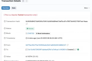 Упрощённо, что здесь произошло: транзакция попала в сеть Ethereum, распространилась по нодам, и была помещена в Mempool на них. Proof of Stake алгоритм выбрал ноду, которая в данный момент будет валидировать, исполнять и помещать транзакции из Mempool в новый блок. Нашей транзакции посчастливилось, и она была выбрана нодой для добавления в блок.