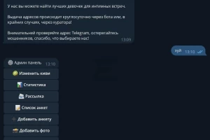 Есть админка, панель для воркеров, также есть "слово" которое пишешь боту и входишь в админку / в панель воркера, удобная хуйня кстати, зацени