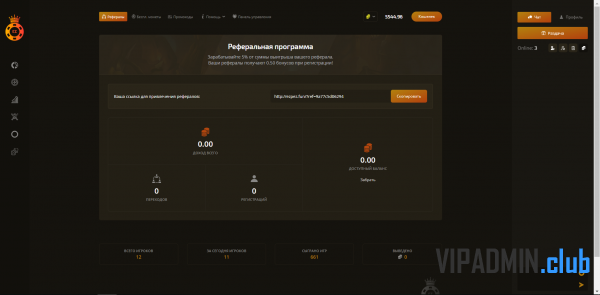 Рефералы - 5% от победы начисляется пригласившему, так же 0.50 при регистрации