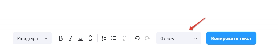 Для работы с текстом в нижней части редактора предусмотрены все необходимые инструменты. С их помощью можно выбирать заголовки, выделять текст жирным или курсивом, создавать маркированные и нумерованные списки, копировать и перемещать текст. Отдельное внимание стоит уделить маленькому окошку, где будет отображаться количество слов.