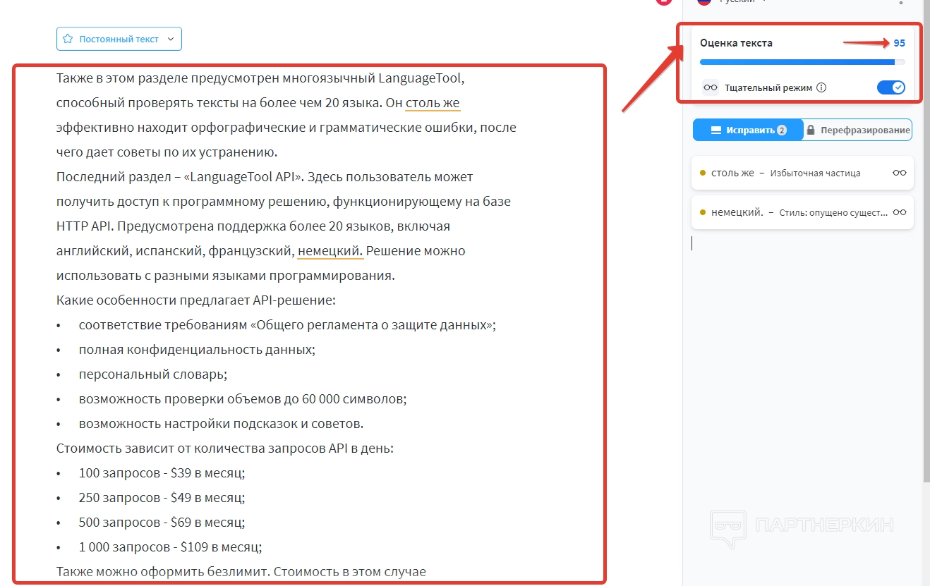 - Проверка грамматики и стиля. LanguageTool проверяет не только грамматику, но и стиль текста, что позволяет сделать текст более легким для восприятия и понимания.