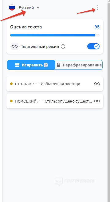 Главный минус сервиса в том, что он не проверяет соответствие терминологии и не подскажет более подходящие варианты терминов в тексте. Также стоит отметить, что
