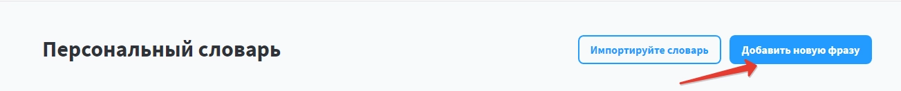 Раздел « Персональный словарь » предоставляет возможность создавать свои словари, внося туда разные слова и фразы, малоизвестные технические термины, названия и т.д. Для добавления необходимо нажать на соответствующую кнопку в правом верхнем углу.