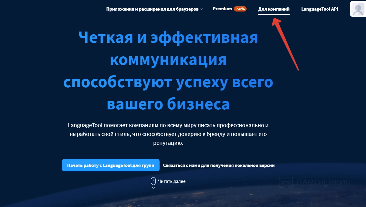В разделе « Для компаний » сервис предлагает программное решение для совместной работы с редактором