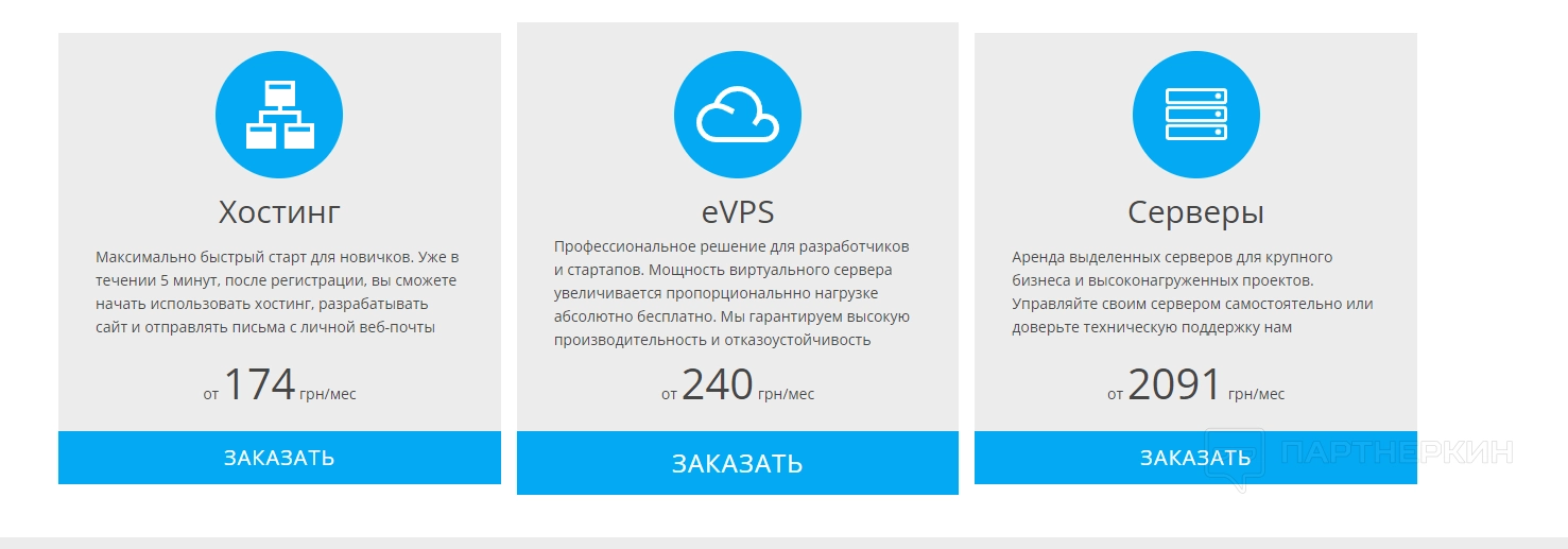 | eVPS-1 | 1х1 ГГц | 0,5 Гб | 8 Гб | Безлимит | 240 грн/месяц |