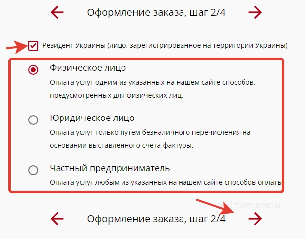 Здесь пользователь должен указать, является ли резидентом Украины, и выбрать статус: