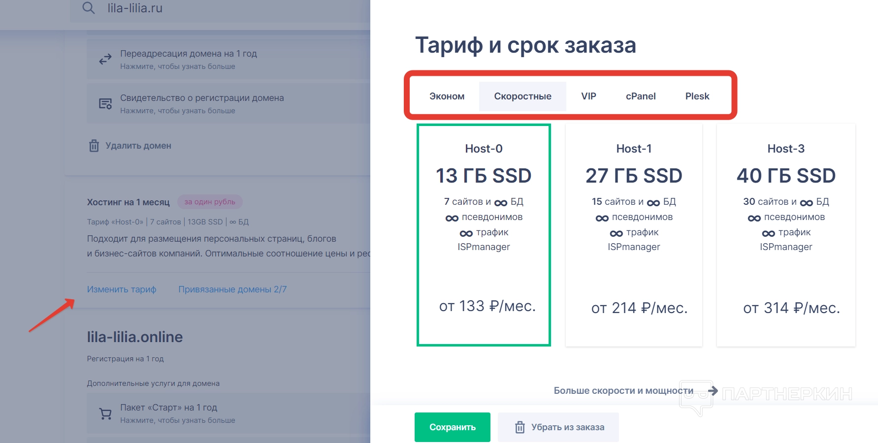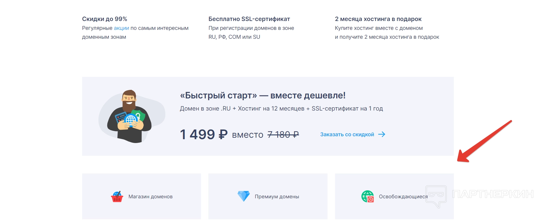 Сервис также позволяет покупать хостинги при оформлении домена или отдельно к домену, который уже купили. Причем домен необязательно должен принадлежать