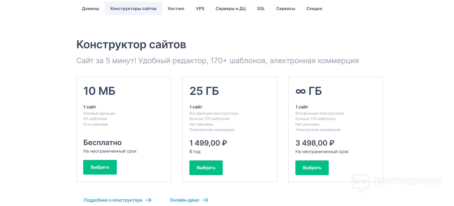 Если перейти в пункт создания своего сайта, нужно оплатить любой из четырех тарифов и использовать конструктор.