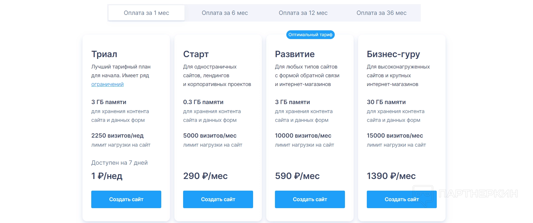 При использовании конструктора также нужно оплатить тариф по выбору — всего их три. Отличаются тем, что в них разное количество шаблонов и отсутствует либо присутствует реклама.