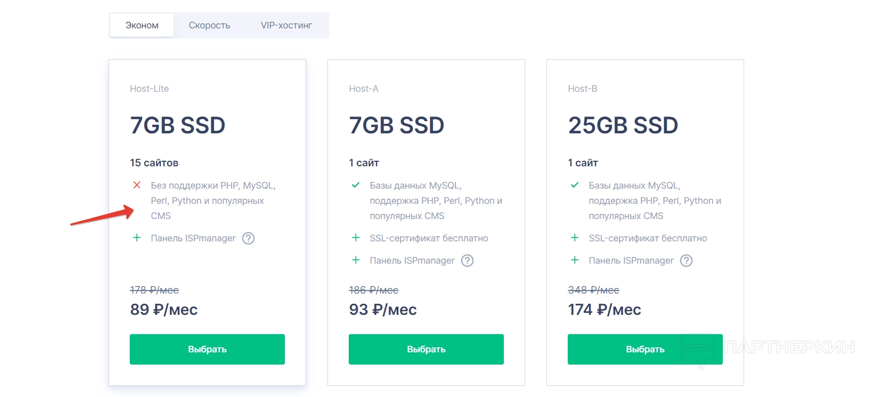 Эконом-хостинги — поддерживают один сайт и дают возможность оформить SSL-сертификат, поэтому хостинг не получится привязать к нескольким сайтам. Есть один вариант эконом-хостинга, который поддерживает 15 сайтов, но при этом он идет без поддержки PHP, MySQL, Perl, Python и популярных CMS — то есть не получится интегрировать с ним сайты, которые пишутся на популярных языках программирования.
