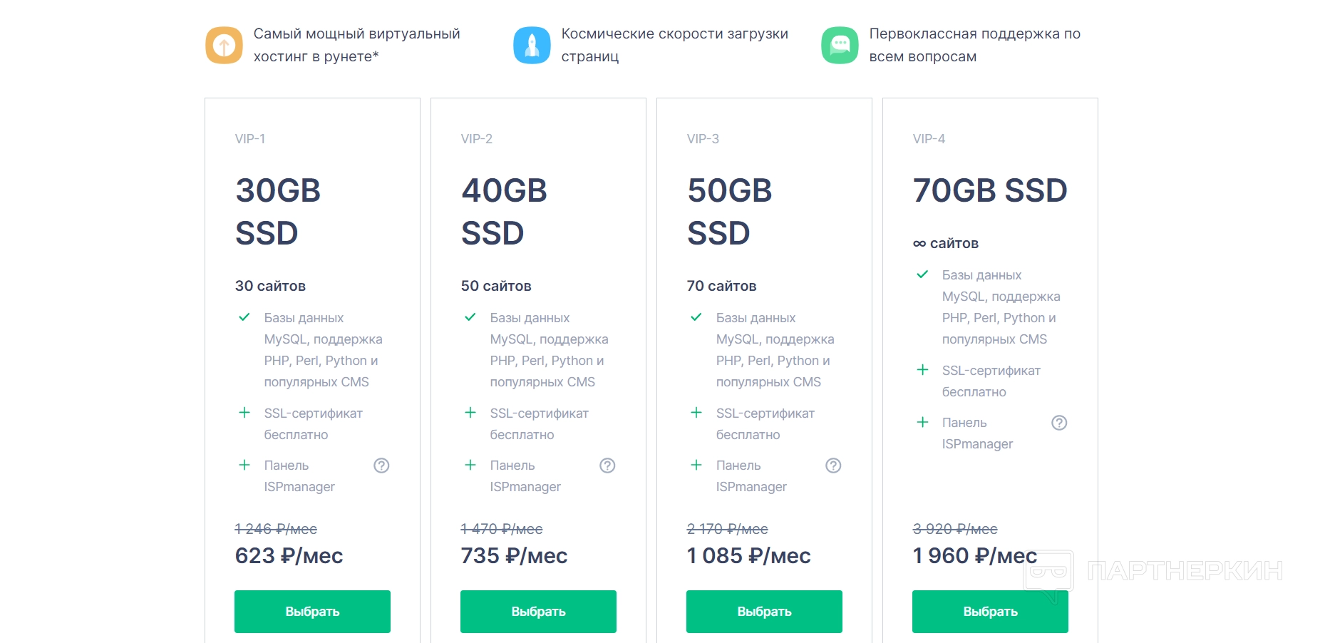 VIP-хостинги — они считаются самыми быстрыми в Рунете и поддерживают от 30 сайтов до бесконечности. При этом пользователи получают постоянную и скоростную поддержку от сервиса.