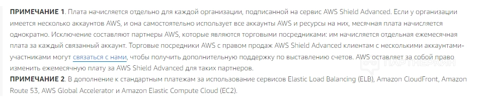AWS Shield Advanced — это платный сервис. Для доступа к этой платформе потребуется подписка на один год. Оплата производится каждый месяц. В дополнение к фиксированному платежу взимается плата за исходящую передачу данных следующими сервисами: