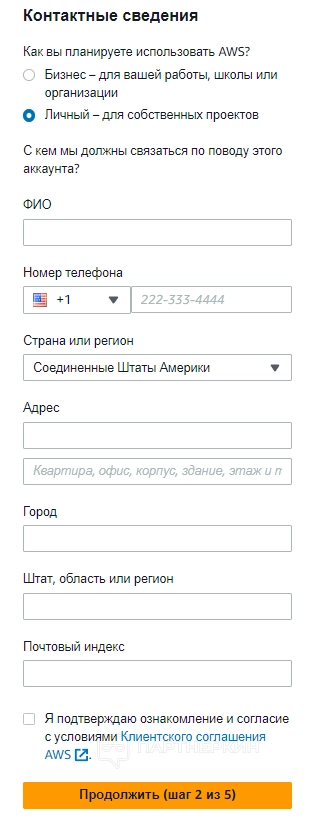 AWS(бизнес — для работы, школы или организации; личный — для собственных проектов).