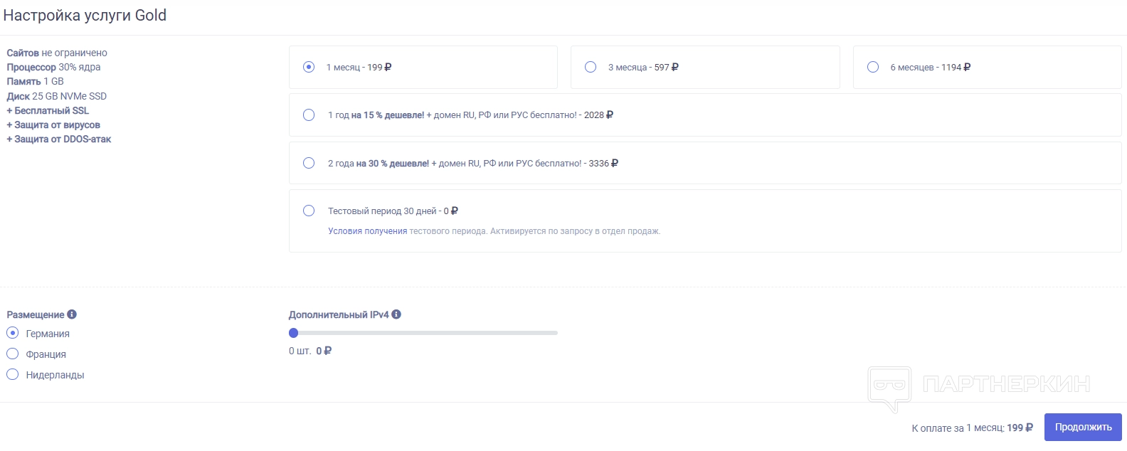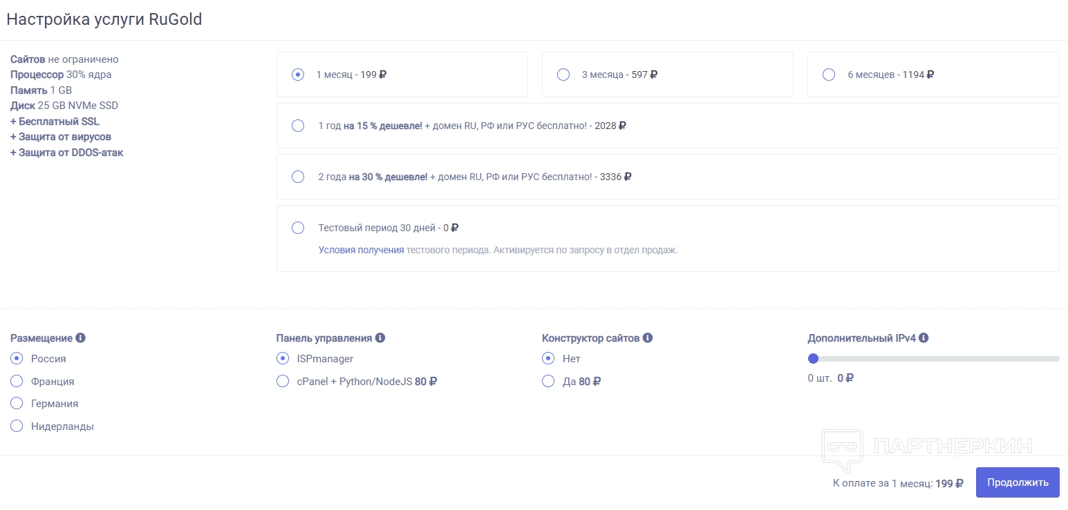 - Дополнительный IPv4. От 150 рублей в месяц.
