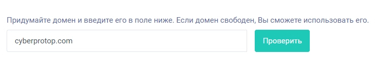 Пользователю необходимо придумать домен и ввести его в поле ниже. Если домен свободен, клиент