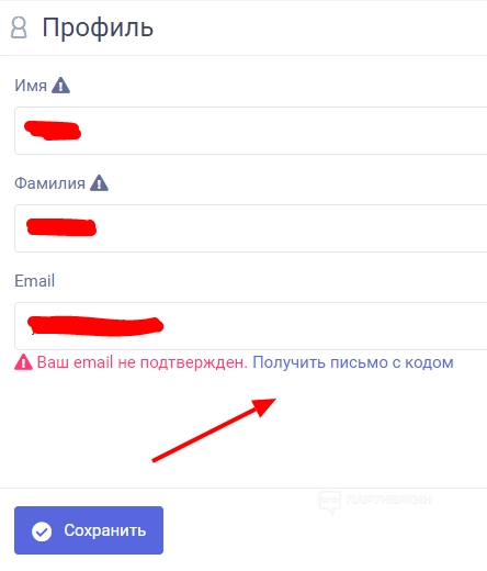 После регистрации необходимо перейти в настройки профиля и подтвердить адрес электронной почты. Для этого нужно выбрать пункт «Получить письмо с кодом».