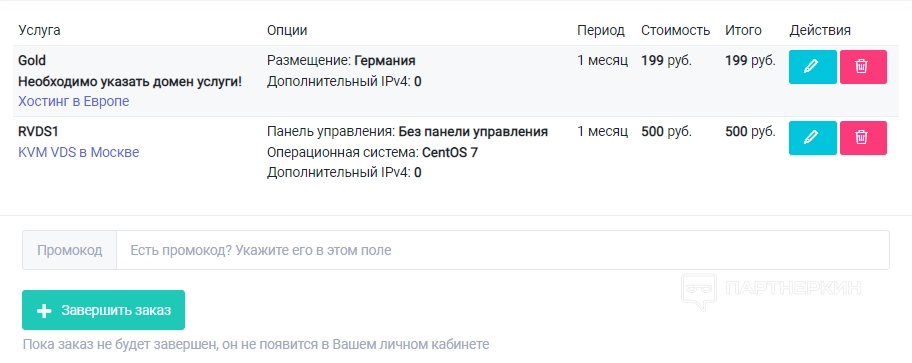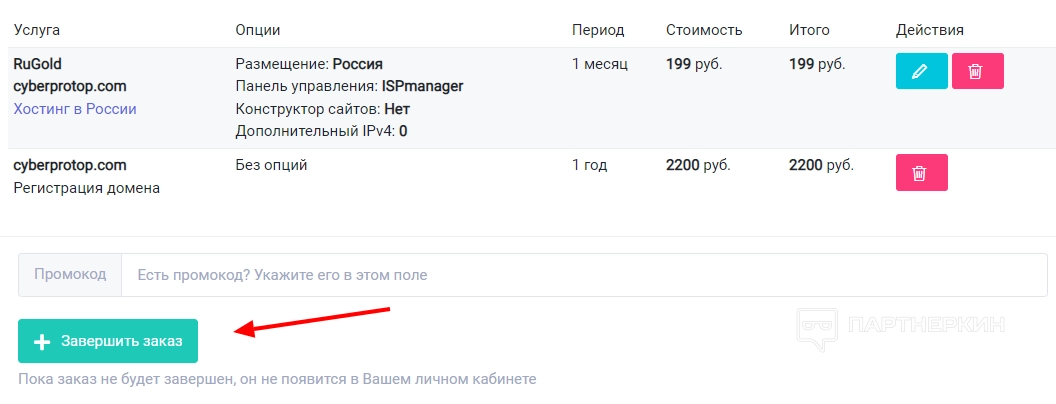 Выбранные продукты будут добавлены в корзину. При наличии промокода нужно ввести его в специальное поле. Для завершения заказа необходимо нажать на зеленую кнопку.