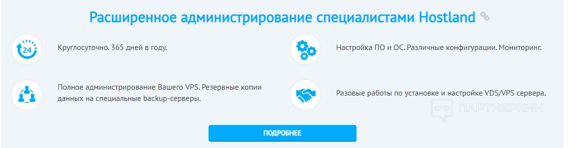 - Бесплатное системное администрирование, настройка сервера также производится бесплатно.