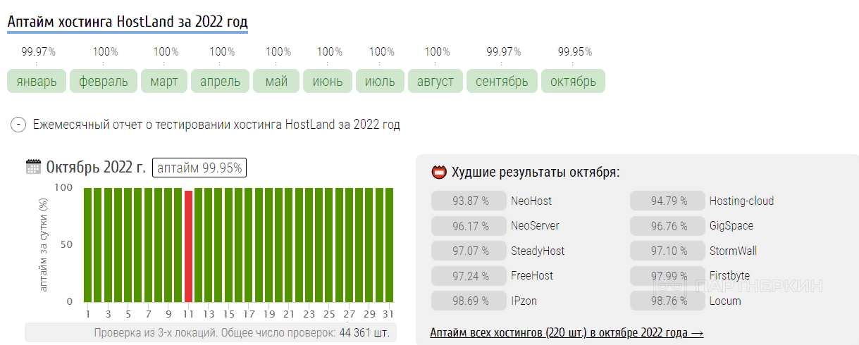 Сервис входит в ТОП русских хостингов, предлагая мощные дата-центры в Санкт-Петербург. Средний показатель аптайма