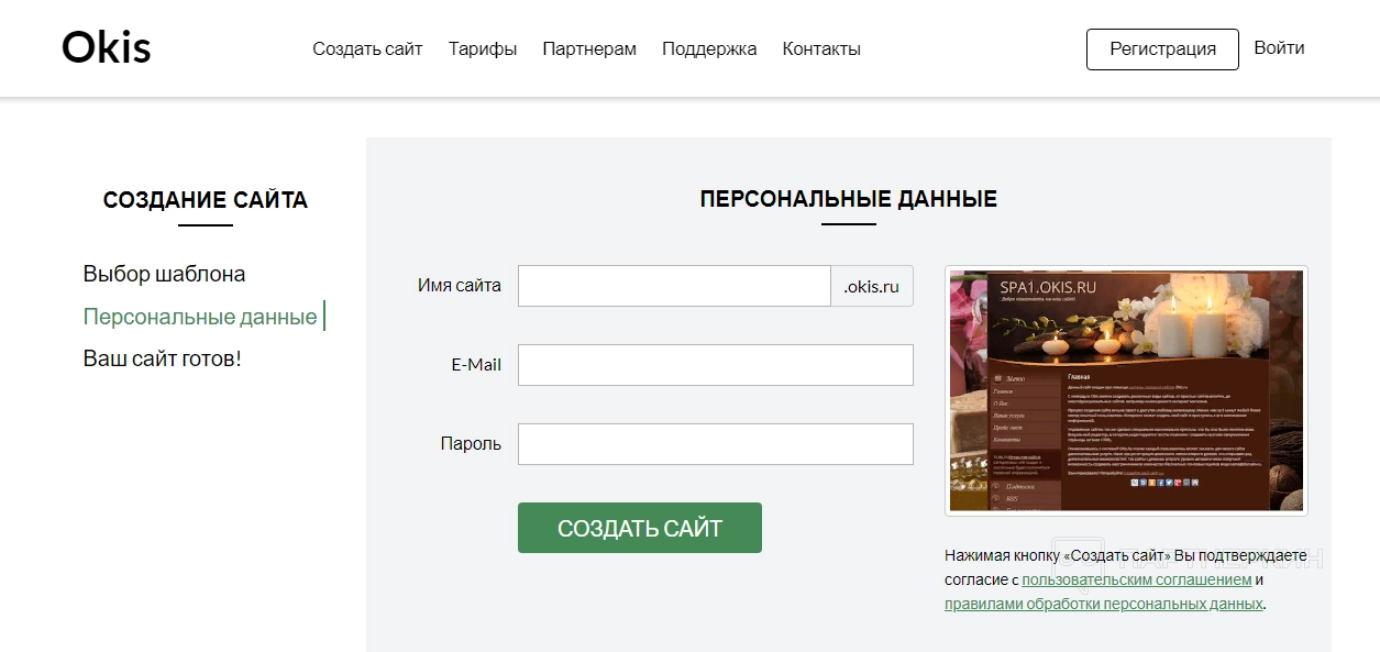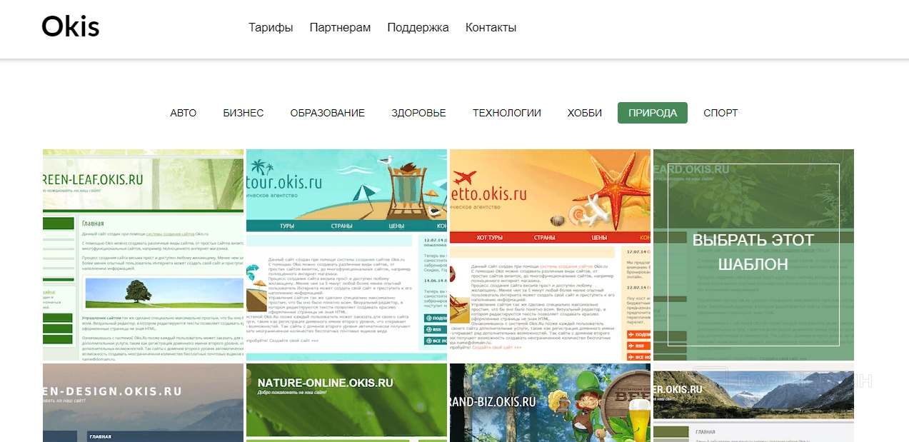Okis позволяет создавать интернет-ресурсы на основе готовых шаблонов и располагать созданные сайты на собственном бесплатном хостинге. Вся рабочая деятельность происходит напрямую из админки и требует минимального вмешательства в настройки.