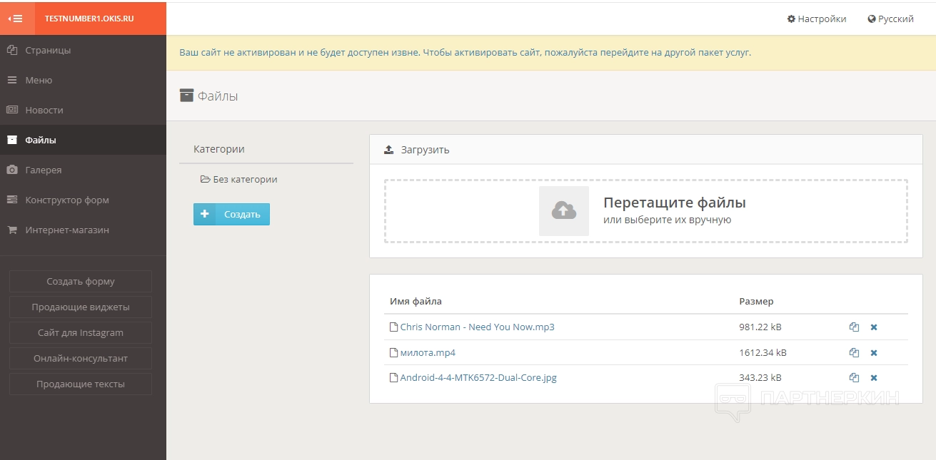 - Файлы – загрузка файлов на хостинг через менеджер.