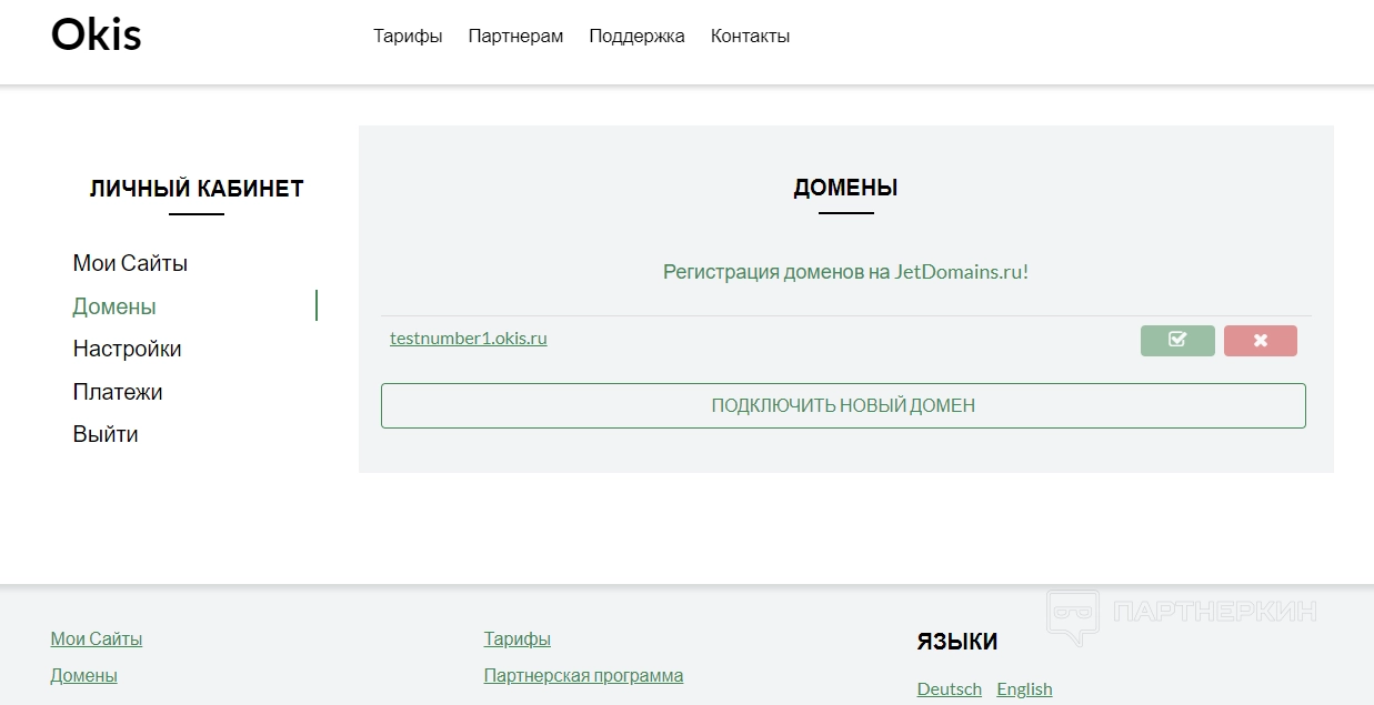 Okis разрешает подключать домены второго уровня, зарегистрированные на их партнерском провайдере JetDomains. Несомненное преимущества подключения доменных имен через этот сервис состоит в том, что от пользователей требуется минимум действий.