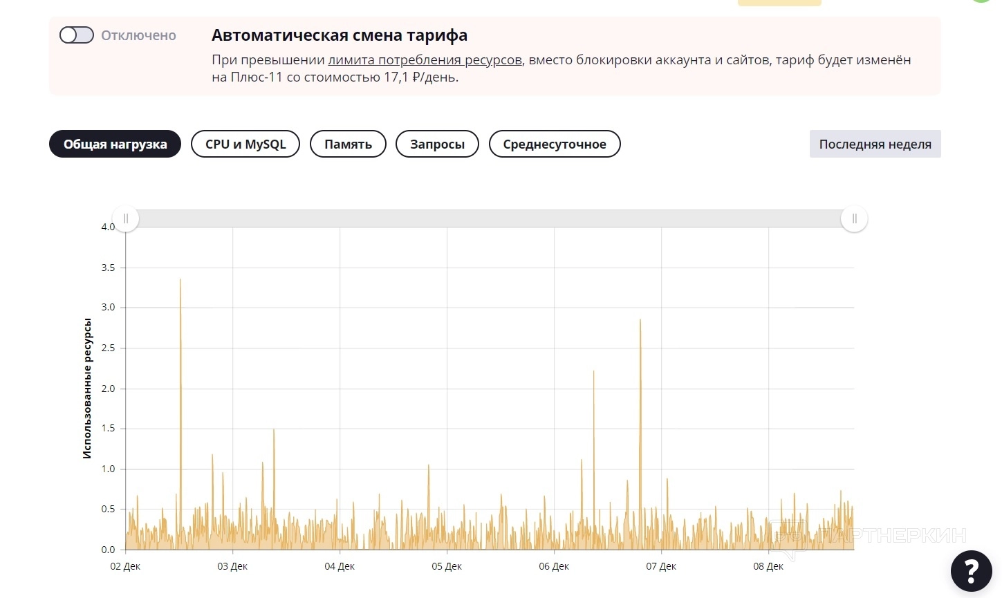 Можно мониторить нагрузку, зайти в PHP панель администрирования, файловый менеджер, проверить резервные копии. В разделах слева находятся опции для управления сайтом.