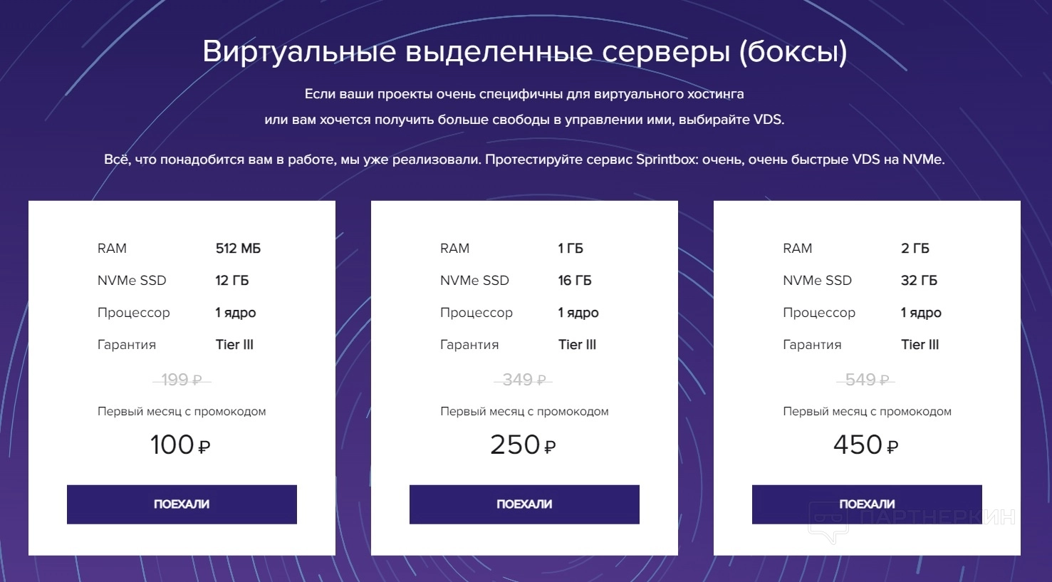 - VDS . Виртуальный сервер подойдет для проектов, специфичных для обычного хостинга, либо когда необходима большая степень свободы в управлении. На самом недорогом тарифе за 199 руб./месяц доступны 512 Мб RAM, 12 Гб NVMe SSD, 1-ядерный процессор, гарантия Tier III. На более высоких тарифах увеличенные параметры по RAM, NVMe SSD, дается большее количество ядер.