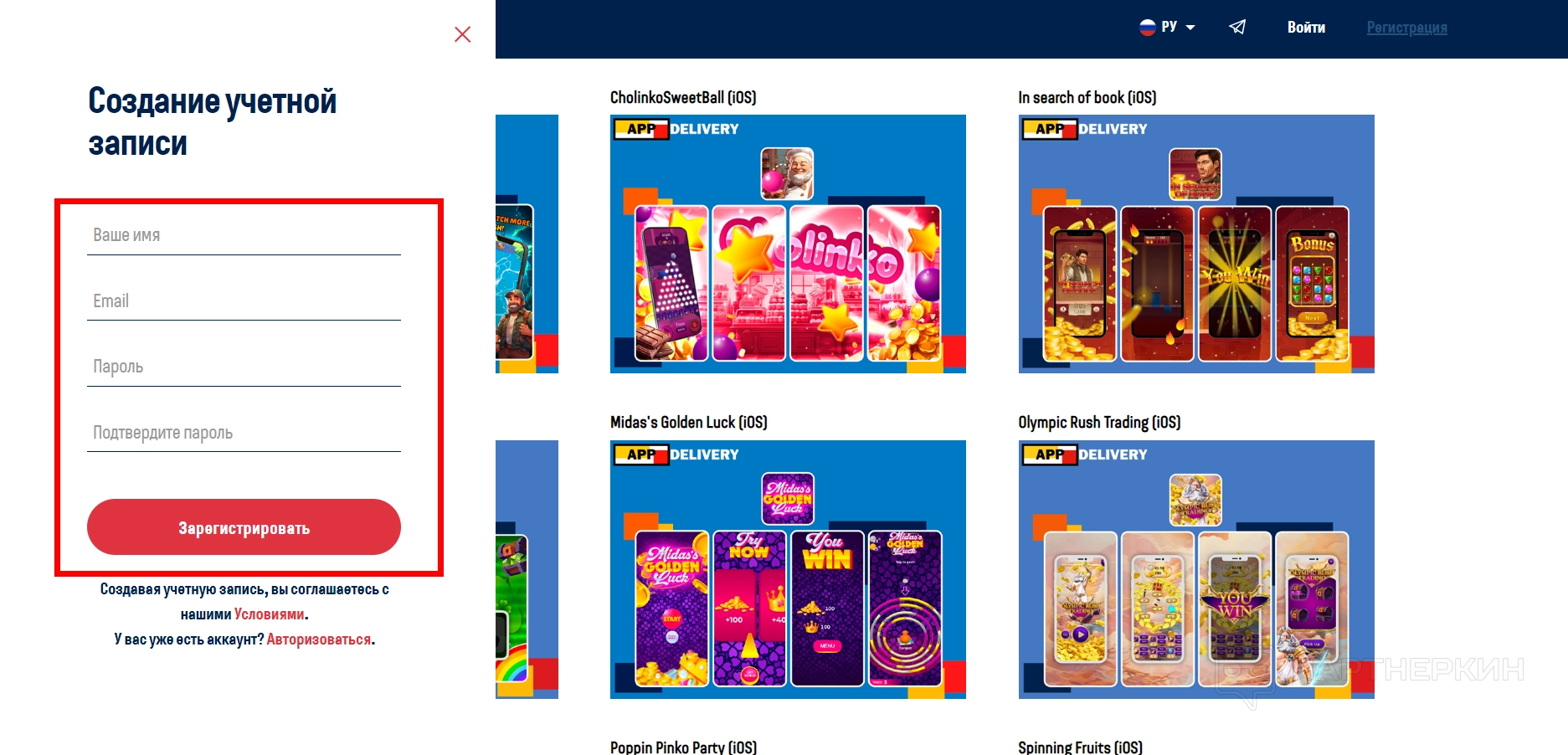 - Заполните форму: укажите логин, пароль. Подтвердите набранный пароль. Нажмите на кнопку «Зарегистрировать».
