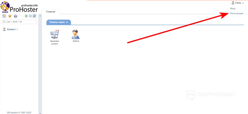 2. Откроется дашборд сервиса. Раскройте меню «Гость» и выберите «Регистрация». В будущем, когда вы создадите аккаунт, можно заходить через пункт «Вход».