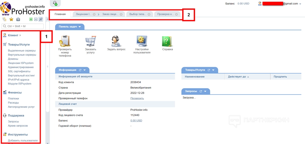 - Товары и услуги. Это возможности сервиса. Все, что можно приобрести на сайте: выделенные и виртуальные серверы, домены, лицензии, администрирование и так далее.