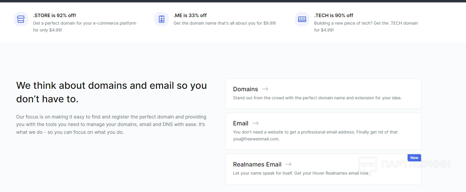 - Честные и прозрачные цены. Hover предлагает простую и понятную структуру ценообразования, без скрытых платежей и навязчивых услуг. Владелец платит только за сам домен, ему не придется беспокоиться о неожиданных дополнительных расходах.