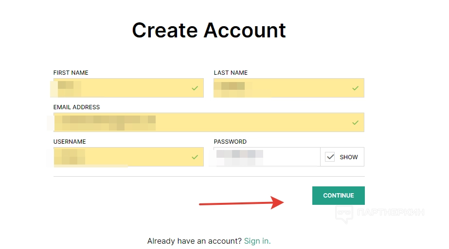 В конце жмем на кнопку «Continue» и завершаем регистрацию.
