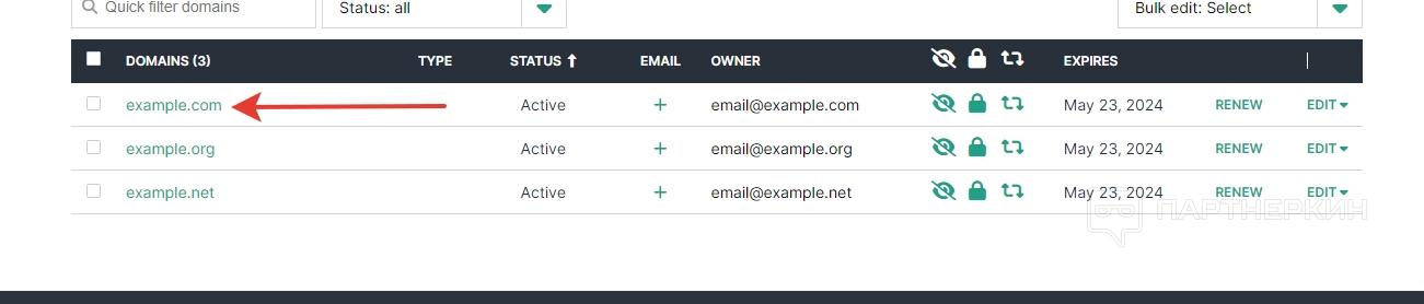 Чтобы получить больше информации о домене, следует кликнуть на его название.