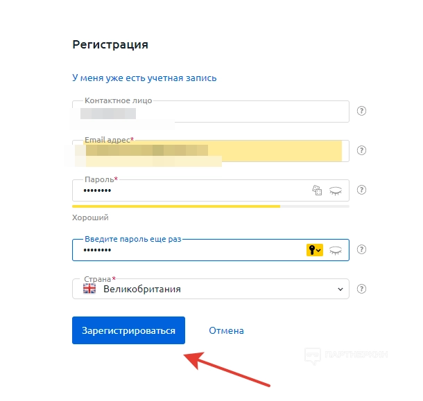 Когда все данные будут введены, жмем на кнопку «Зарегистрироваться».
