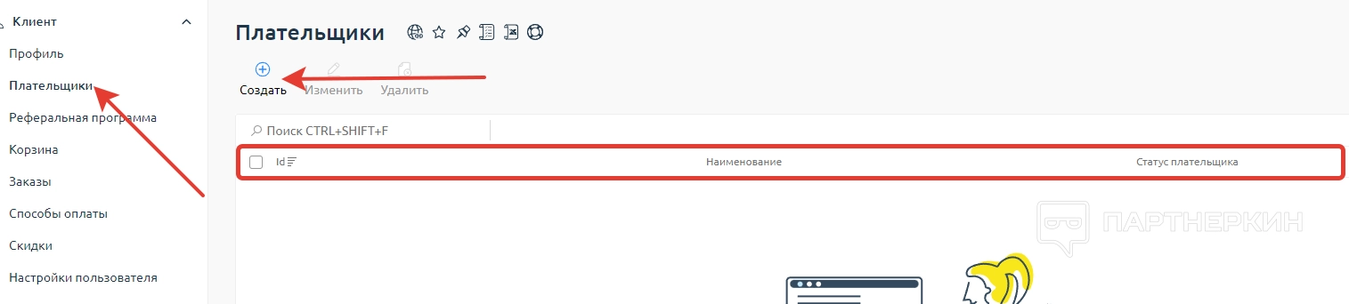 Чтобы добавить нового плательщика, жмем на кнопку «Создать» и заполняем форму со следующими данными:
