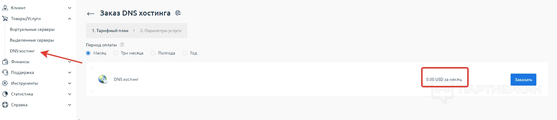 Учтите, что оформление остальных услуг (выделенные серверы и DNS-хостинг) осуществляется по такому же принципу. Также стоит обратить внимание, что DNS хостинг на момент написания статьи был бесплатным.