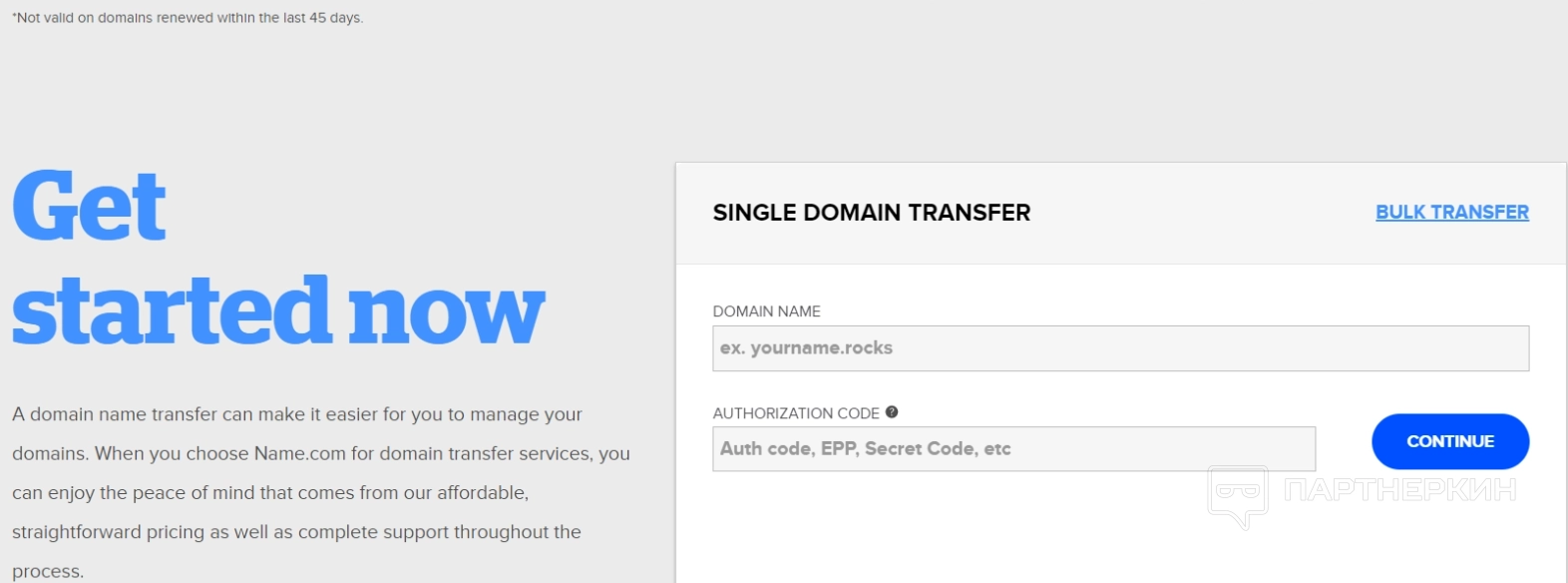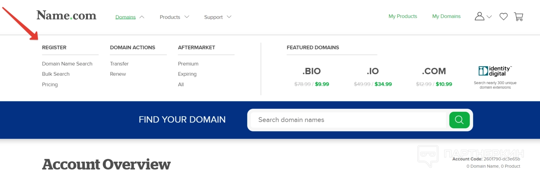 - трансфер — здесь можно перенести домен из другого регистратора;