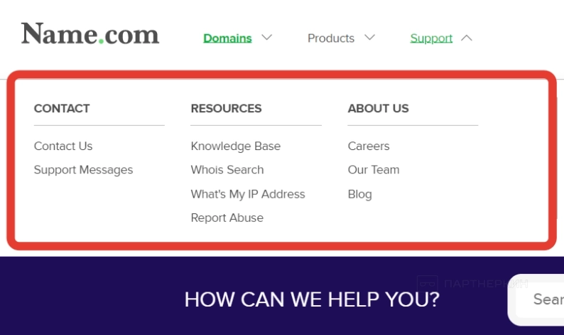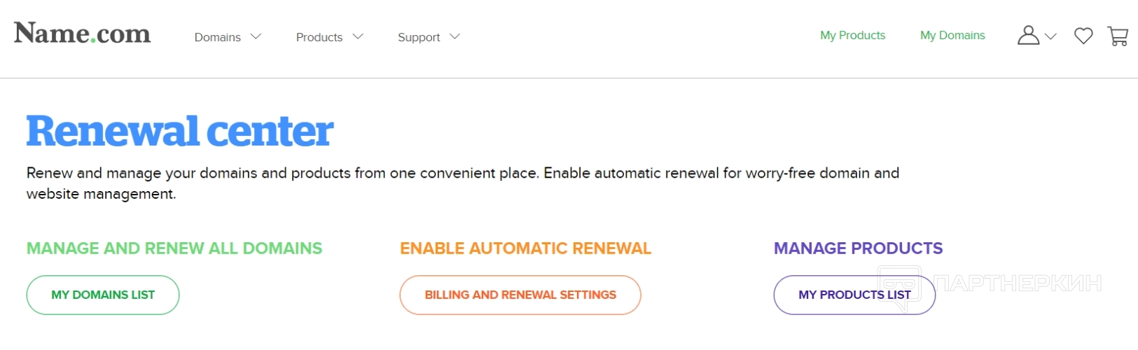 Чтобы использовать возможности сервиса, нужно открывать разделы, которые мы выделили на скрине — это домены, продукты и поддержка. Давайте разберем тезисно, какие возможности даются в каждом из них.