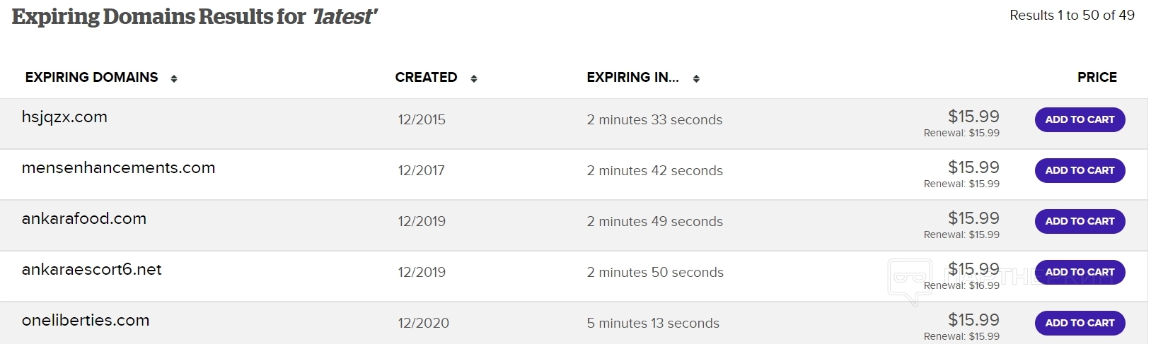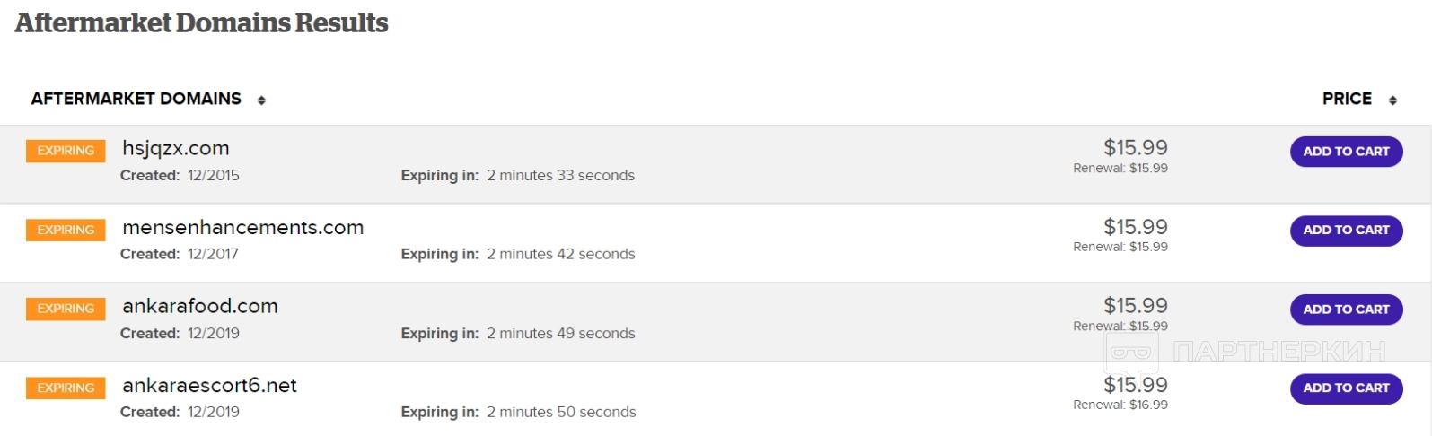 - истекающие — показывают домены, которые скоро могут освободиться;