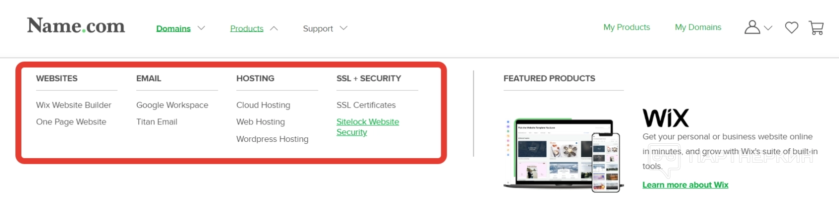 Продукты — в это разделе пользователи могут приобрести веб-хостинг, корпоративную электронную почту, SSL-сертификат, а также создать свой сайт через полноценный конструктор.