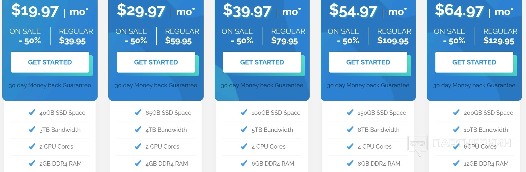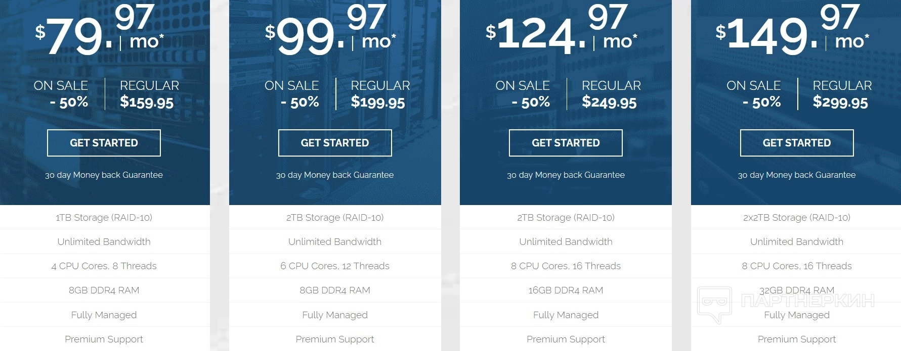 Тарифы VPS стартуют от $19,97 в месяц. Реселлер хостинг стоит от $29,95. Стоимость услуги управляемого выделенного сервера мирового класса $79,97 в месяц. Манибэк по услуге VPS, реселлер хостинга и выделенного сервера — в течение 30 дней. Сервис периодически дает акции и скидки.