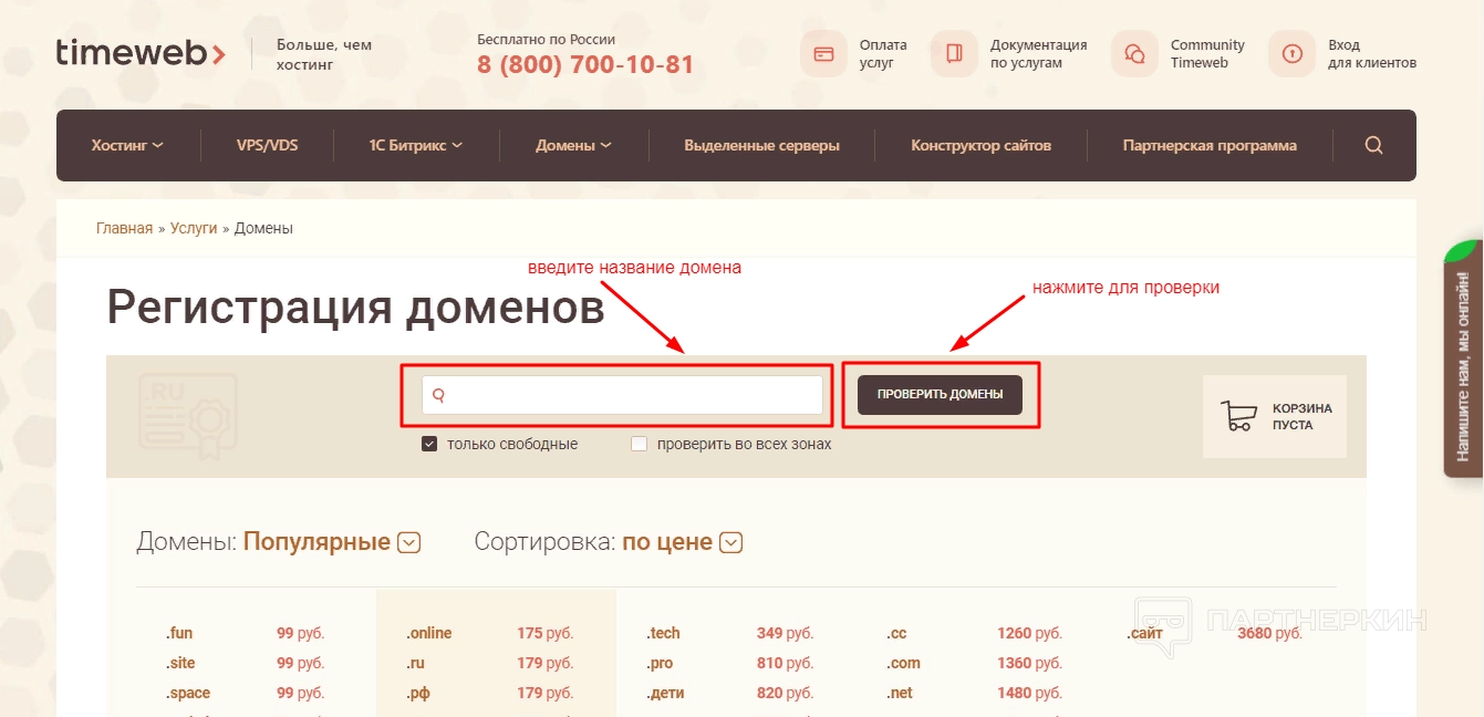 - магазин доменов и регистрация в качестве партнера по реселлингу.