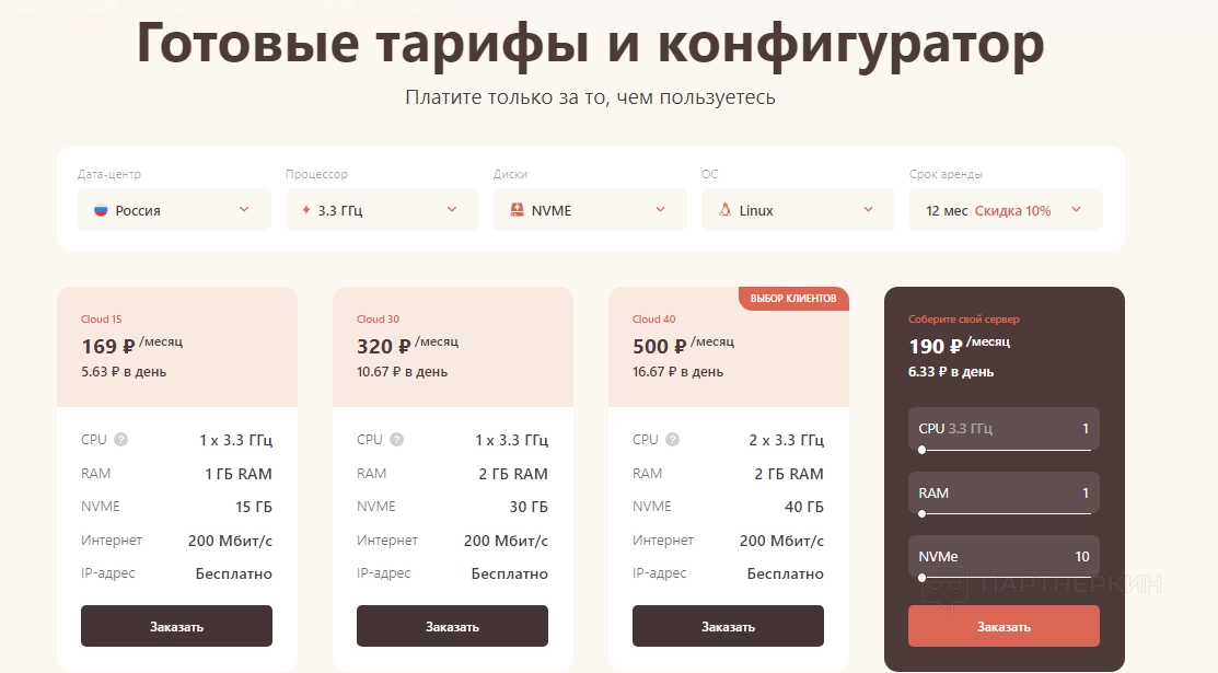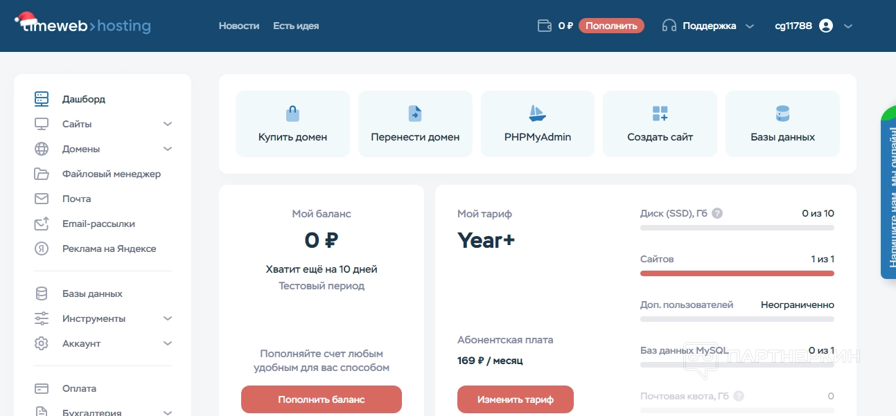 Хостер предлагает широкий спектр инструментов и тарифов под любые задачи. Каждый вариант можно протестировать в течение 10 дней, но в пробный период накладывается ограничение на некоторые инструменты.