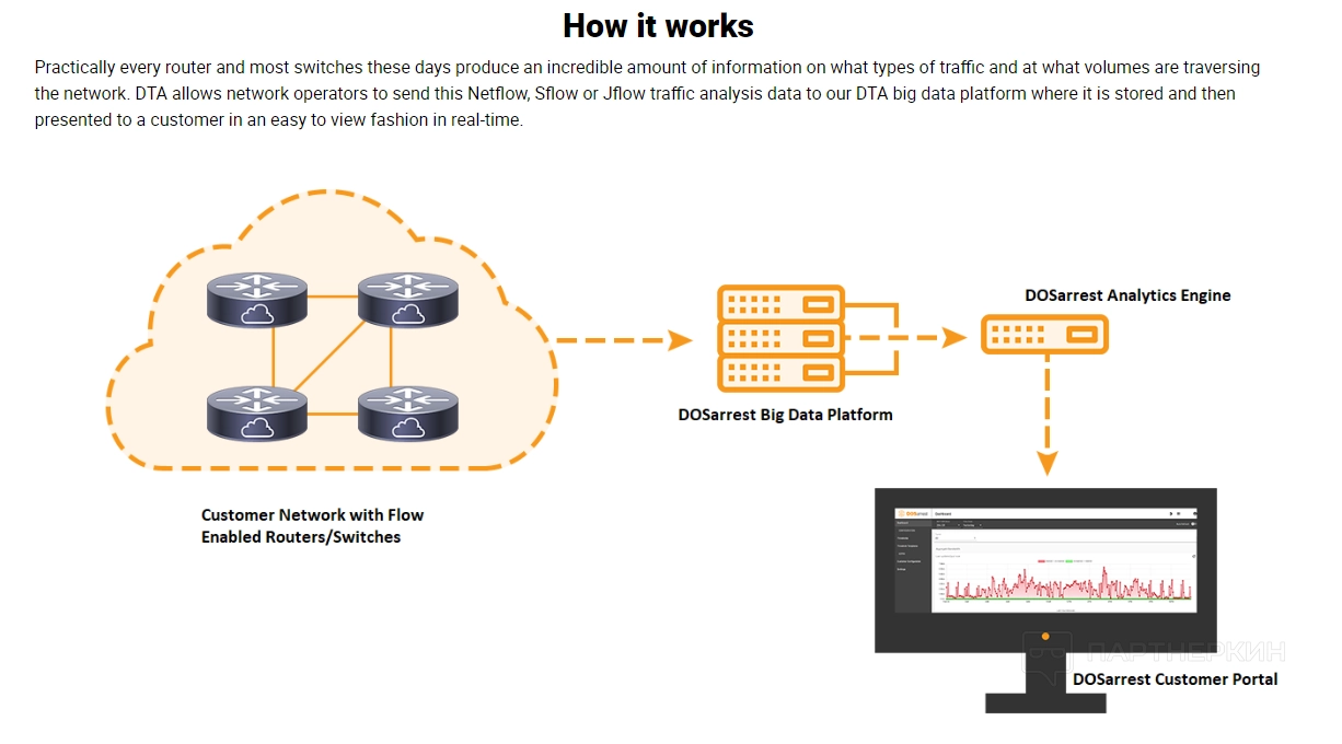Инструмент обнаруживает и предотвращает атаки на уровне сетевой инфраструктуры. Для работы сервис использует разные механизмы — например, мониторинг трафика, фильтрацию трафика и ограничение доступа к определенным ресурсам.